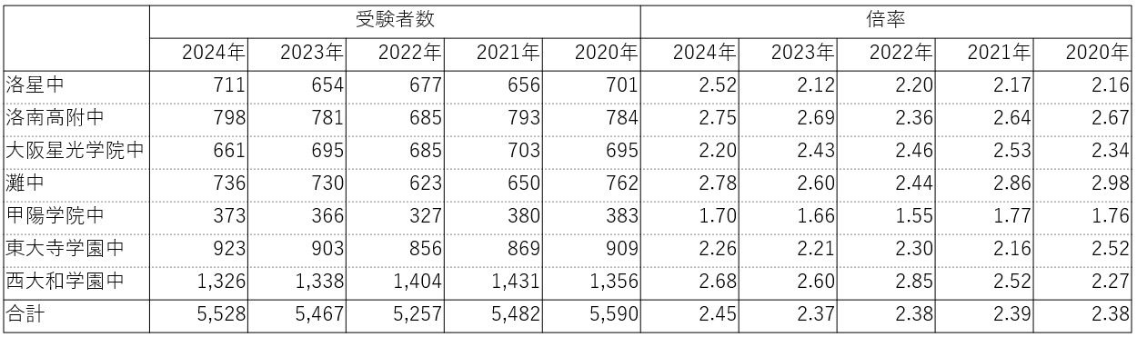 投稿: 関西の中学入試の受験者数と倍率の推移[2020年~2024年]フルサイズ1250 × 371